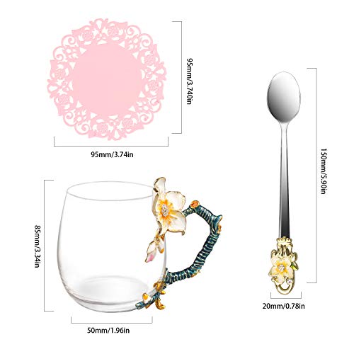 Il regalo ideale: La tazza da tè a fiori è realizzata in vetro di cristallo, design con fiore di albicocca e smalto, rendendo il prodotto elegante e romanzo. È il regalo perfetto per mamma, insegnante o altri anziani, ovviamente, puoi anche regalarlo alla tua ragazza per compleanno, festa della mamma, festa dell'insegnante, San Valentino, ecc.