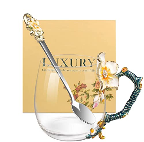 Wisolt Flower Tea Cup, Tazze di Smalto di Vetro Fatti a Mano Senza Piombo, Mamma, Ragazza, Insegnante per Il Compleanno, Festa della Mamma, Anniversario di Matrimonio