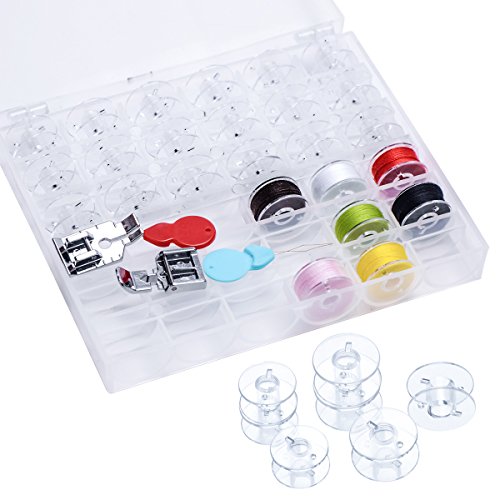 Witasm 42 pz. Set Bobine da Cucire Rocchetti in Plastica Trasparente, Nastro di Misura, Forbici, Taglia-asole e Infila Aghi per Macchina da Cucire Singer, Brother, Babylock, Janome, Kenmore, Elna