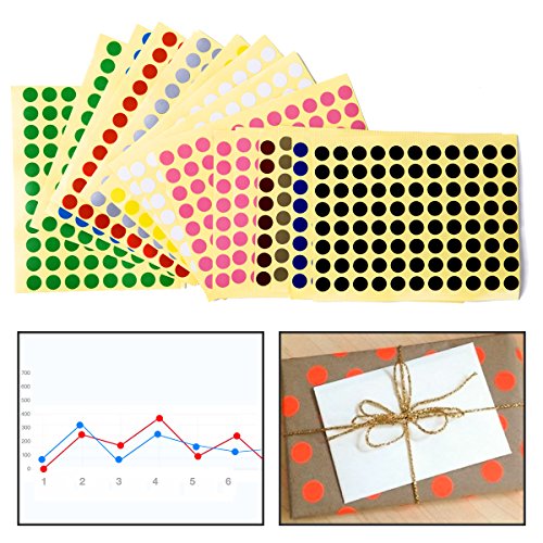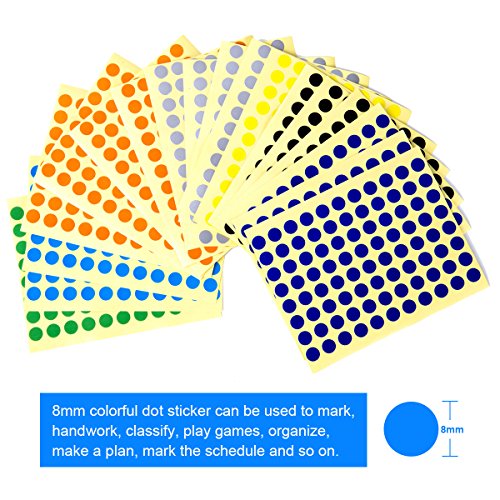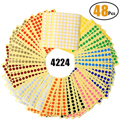 Witasm Etichette Adesive Colorate Etichette Autoadesive Rotonde 8mm 48 Fogli 16 Colori Punti Adesivi Dot 4224 pz.