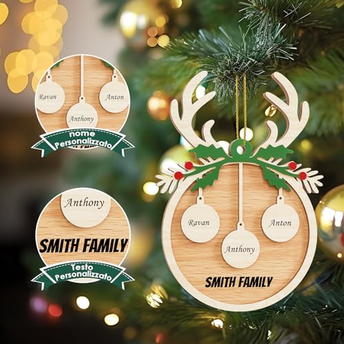 Witfox Ciondolo di Natale personalizzate con 8 nomi - 2023 Ciondolo natalizio in legno personalizzato Regali di Natale personalizzati per la famiglia, il partner e gli amici