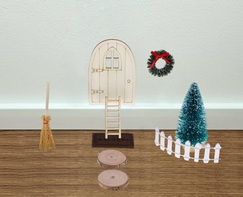 Set di base: il set contiene tutto l'essenziale, ad esempio porticina delle fate, recinzione, dischi in legno, albero di Natale, ghirlanda decorativa, scala in legno, gnomo, scopa e zerbino.