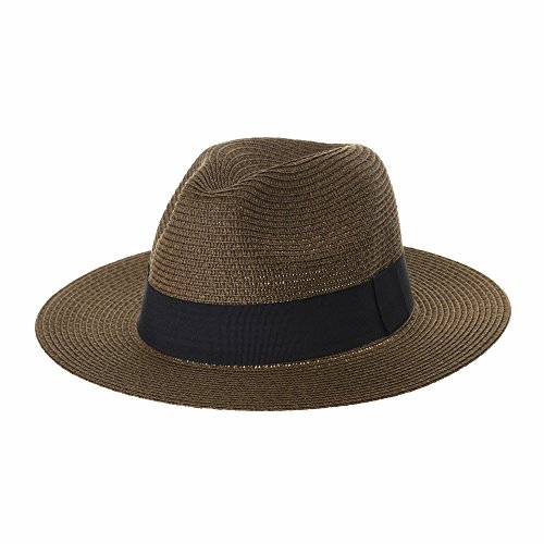 WITHMOONS Cappello Panama Fedora Panama Hat Black Banded Wide Brim Cool Summer SL6690