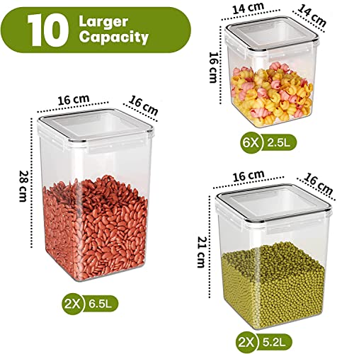Withosent Contenitori Ermetici per Alimenti 10 Pezzi, Grande 6,5L Contenitori Plastica Cucina con Coperchio, Senza BPA Contenitore Spaghetti, Pasta, Porta Cereali, Muesli, Farina(6,5L 5,2L 2,5L)