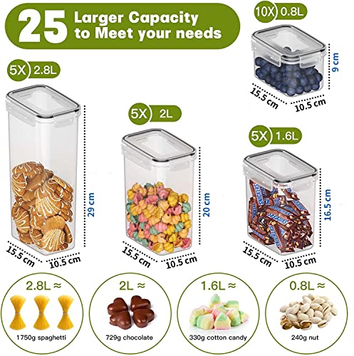 Withosent Contenitori Ermetici per Alimenti 25 Pezzi, Contenitori Plastica Cucina Organizer con Coperchio, Senza BPA Contenitore Spaghetti, Porta Cereali, Muesli, Pasta(2,8L 2L 1,6L 0,8L)