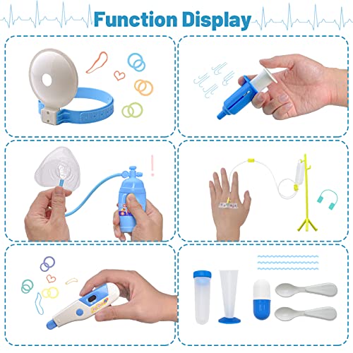 Un vero medico. I bambini possono indossare costumi come un vero medico per prendersi cura dei genitori e degli amici che giocano ai pazienti. Lo stetoscopio può fare un battito cardiaco e il termometro può far lampeggiare le luci e visualizzare i numeri durante l'uso, offrendo un ambiente di gioco più realistico e ore di divertimento per i bambini.