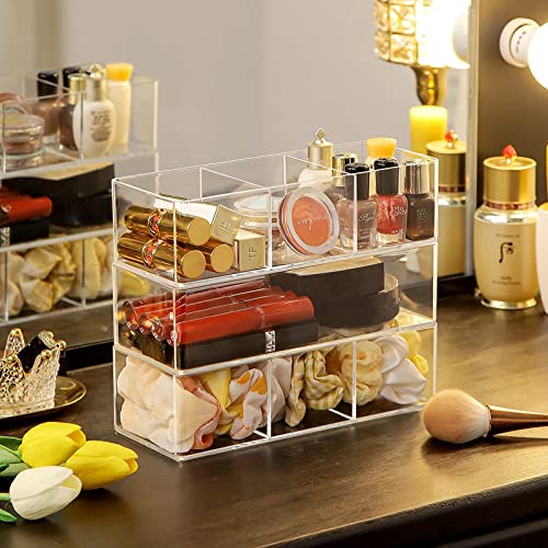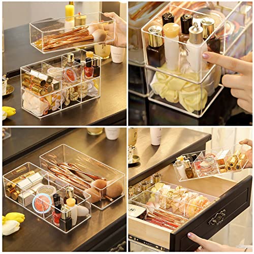 Withosent Organizer Trucchi Cassetti Set di 2,Acrilico Organizzatore Cassetti,Impilabile Contenitore Porta Trucchi Organizer,Make Up Organizer Multifunzione per Cosmetici,Cancelleria e Gioielli