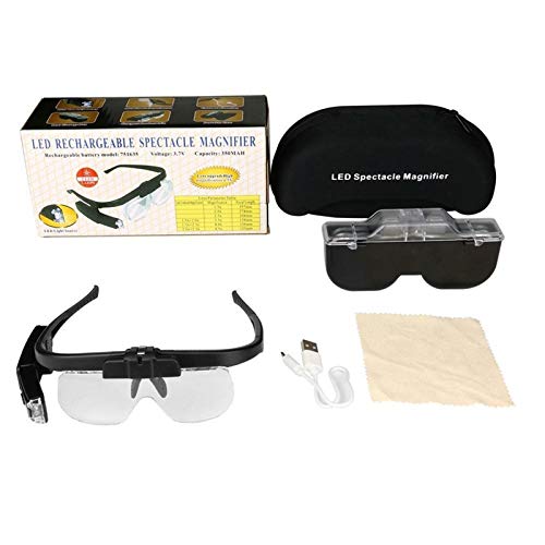 Without brand LT-Tool, 1set Fascia Magnifier USB Capo Ricaricabile Montato ingrandimento Occhiali con Lenti Removibili 2 luci del LED for la Lettura di lavori da Vicino (Colore: Nero)