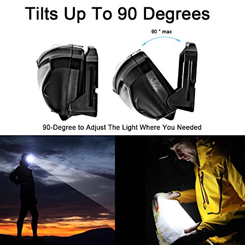 【INFORMAZIONI DI FUNZIONAMENTO】 5 sono 3 modi di luce bianca (100% luminosità, 15% luminosità, sensore IR) +2 modalità di visione notturna rossa (luminosità 100%, SOS), 2 interruttori separati. Torcia elettrica sposta fino a 90 gradi, Più versatile per il tuo lavoro di dettaglio da vicino.