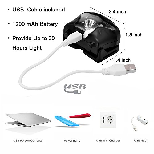 【30 ORE ULTRA-LUMINOSO】 200 Lumens fino a 500+ ft di visibilità, Led dura fino a 30000 ore. Batteria di litio incorporata 1200 mAh, piena da qualsiasi porta USB 4-6 ore, fornisce 30 ore di luce costante. Ideale per sport all'aria aperta, pesca, fai da te, handymen, meccanica e altri.
