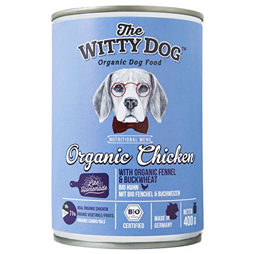 The Witty Dog, Cibo per cani umido interamente BIO, Menu biologico completo: Pollo con Finocchio e grano saraceno, Lattine 6x400 Gram. (alimento naturale per puppy, adulti, senior)