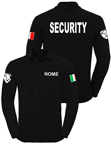 WIXSOO Polo Security Uomo Manica Lunga Panther con Nome Personalizzato (Nero, M)