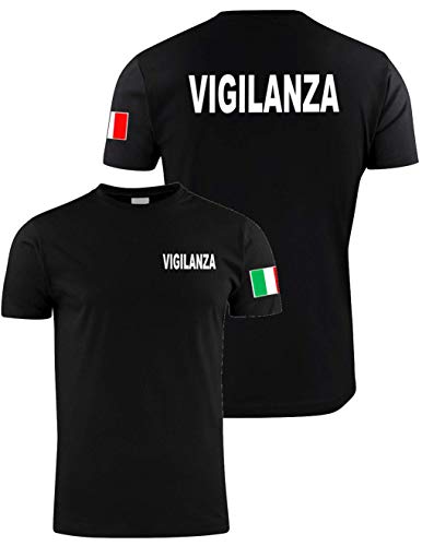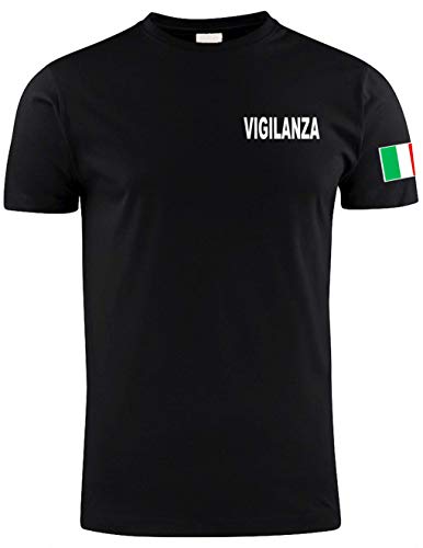 WIXSOO T-Shirt Maglietta Vigilanza Uomo Nera Linea Italia (XL)