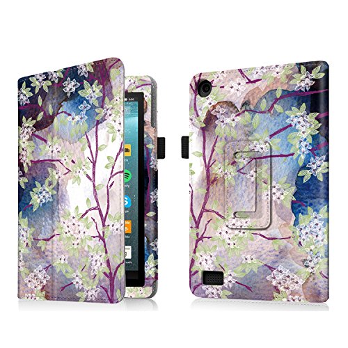WizFun Folio custodia case cover per 7 inch Fire 7 [7th generazione, modello 2017 / 5th generazione, modello 2015] tablet, LoveTree