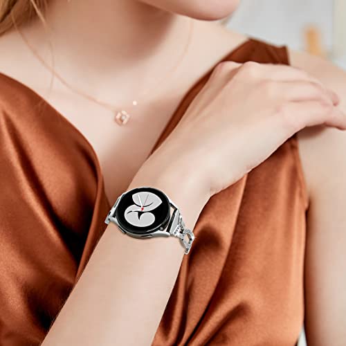 Wizvv Cinturino Compatibile con Galaxy Watch 4 Active 2 Smartwatch Brillanti Strass Carino 20mm Cinturini in Metallo Eleganti Eleganti Bracciali Accessori per Huawei GT2 GT3 Donne Ragazze-argento