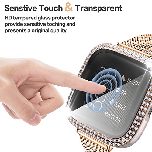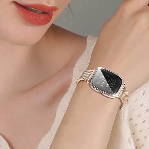 Wizvv Versa 2 - Custodia protettiva glitterata compatibile con smartwatch Fitbit Versa2 Bling Crystal Diamond Hard PC Cover pellicola protettiva in vetro temperato per donne e ragazze rosa