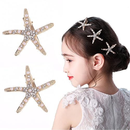 WKRTDY Set di 2 Fermagli per Capelli con Stella Marina in Cristallo e Strass, per Donne e Ragazze Adoro Oro