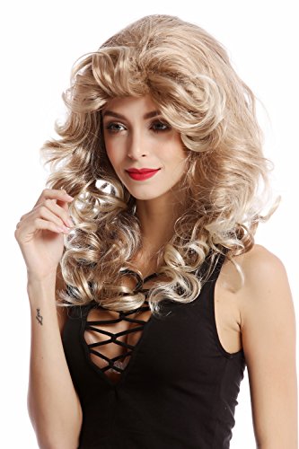 WIG ME UP - WL-3010-27T613 Parrucca donna Star Diva Mix Biondo Punte biondo platino Lunga Ondulata Voluminosa Cotonata Anni 80-55 cm