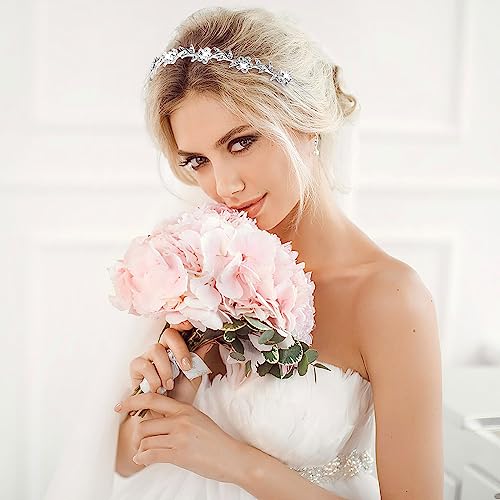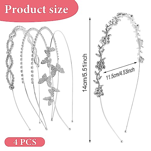 WLLHYF 4 fasce per capelli argentate con strass per sposa e damigelle d'onore, con fiori e foglie, corona glitterata, tiara a cerchio, con farfalla scintillante, per donne e ragazze
