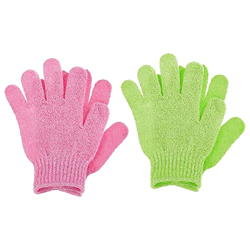 WLLHYF 4PCS guanti esfolianti doppia texture guanti da bagno corpo scrub esfoliante scrubbing guanto per doccia Spa massaggio pelle morta rimozione esfoliante guanti da bagno(verde erba, rosa)