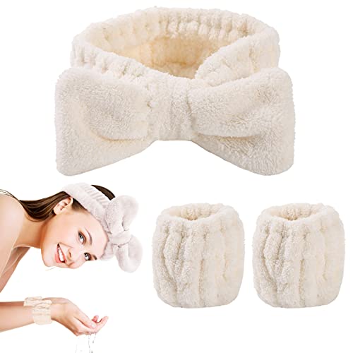WLLHYF 3 pezzi Spa fascia per il lavaggio del viso Braccialetti per le donne ragazze lavaggio viso asciugamano braccialetti fascia fascia fascia elastica braccialetto (bianco)