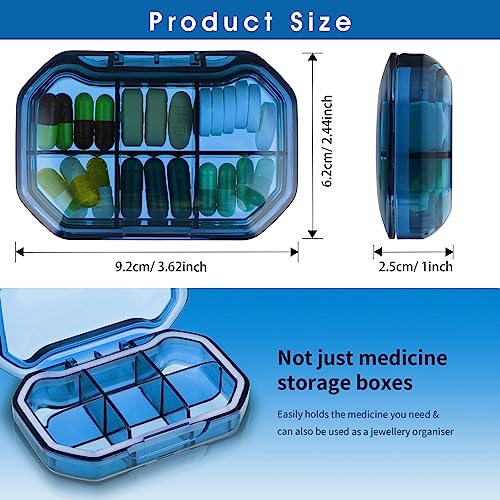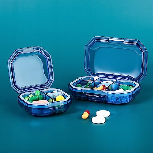 Confezione: riceverai 2 scatole portapillole, un elegante organizer per pillole da viaggio blu, il piccolo portapillole include 4 scomparti e 6 scomparti, progettato per diversi periodi di tempo e diversi momenti di assunzione, il nostro portapillole portatile da viaggio è pratico ed elegante, leggero, puoi portarlo ovunque.
