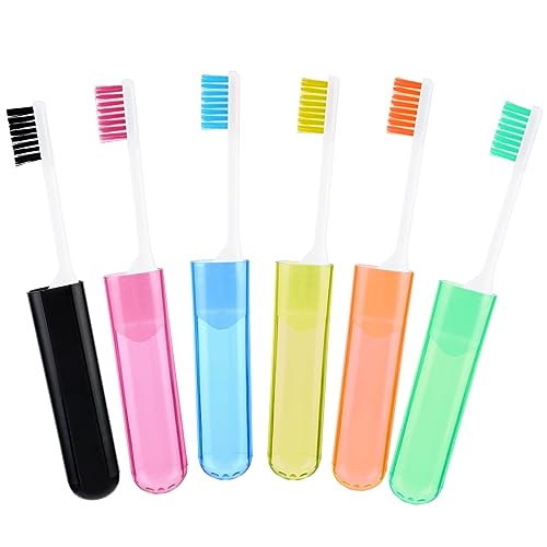 WLLHYF Spazzolino da viaggio 6 pezzi mini spazzolino pieghevole portatile tascabile setole morbide spazzolini da denti 6 colori Bulk spazzolino da denti per adulti viaggi campeggio escursionismo