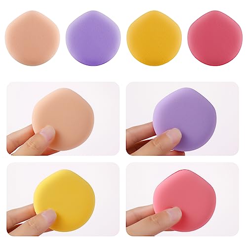 【Confezione: riceverai 4 pezzi di set di spugne per il trucco, la confezione include giallo, viola, rosso, colore della pelle, rotondo con grande forma a punta, può essere applicato a tutte le aree del viso, per creare un trucco di base uniforme, il numero è sufficiente per l'uso quotidiano e la sostituzione.