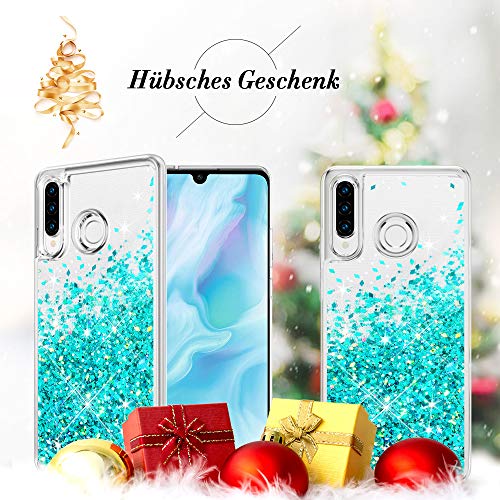 Wlooo Cover per Huawei P30 Lite, P30 Lite Cover, Cover Huawei P30 Lite, Glitter Bling Liquido Custodia Sparkly Luccichio TPU Silicone Protettivo Morbido Brillantini Quicksand Case (Teal)