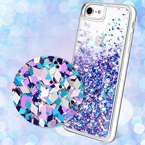 Wlooo Cover per iPhone SE 2020/2022, iPhone 6/6s/7/8 Cover, Glitter Bling Liquido Custodia Sparkly Luccichio Ragazze Donne TPU Silicone Protettivo Morbido Brillantini Quicksand Case (Blu Viola)