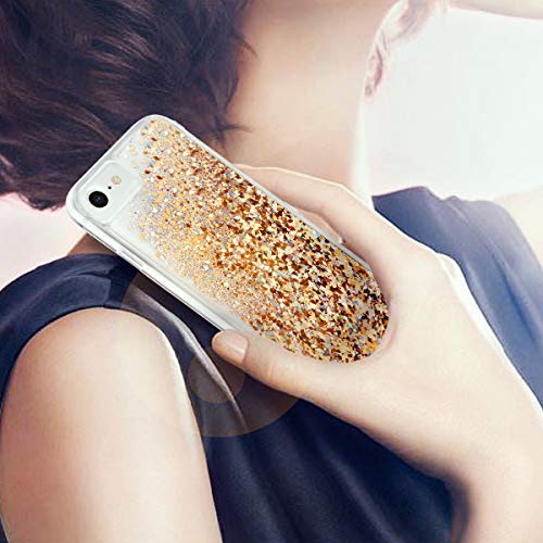 Wlooo Cover per iPhone SE 2022/2020, iPhone 6/6s/7/8 Cover, Glitter Bling Liquido Custodia Sparkly Luccichio Ragazze Donne TPU Silicone Protettivo Morbido Brillantini Quicksand Case (Oro Argento)