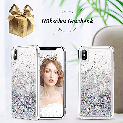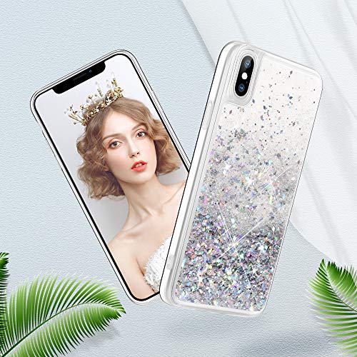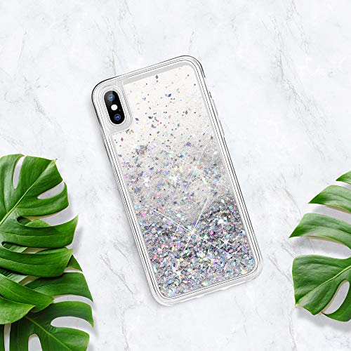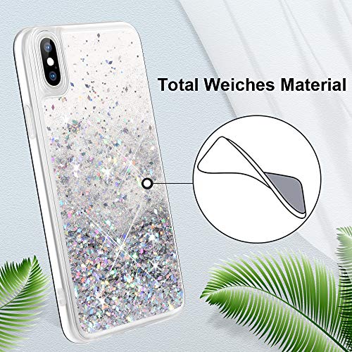 Wlooo Cover per iPhone XS, Cover iPhone XS 5.8, Glitter Bling Liquido Custodia Sparkly Luccichio Pendenza TPU Silicone Protettivo Morbido Brillantini Quicksand Case per iPhone XS/X (Argento)