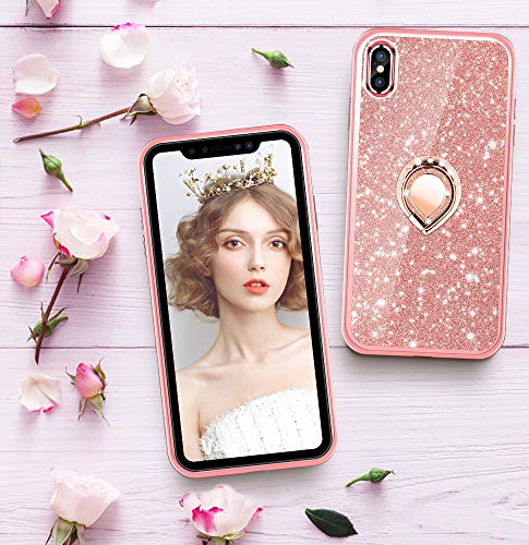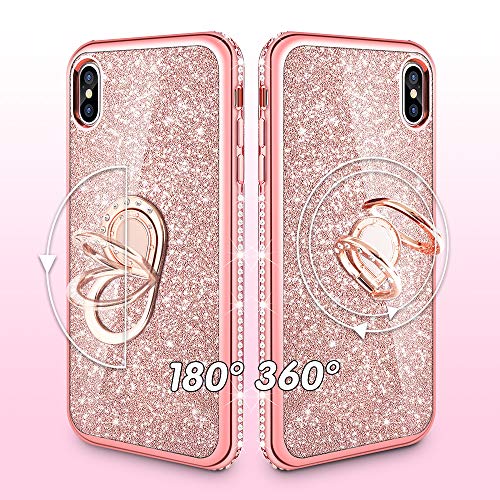 Wlooo Cover iPhone XS Max, Glitter Diamante Custodia Bling Cute Cover Strass Shiny Ragazza anello Supporto Ring Kickstand Cristallo Protettivo TPU Silicone Case per iPhone XS Max (Oro rosa)