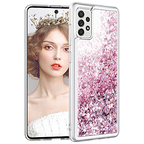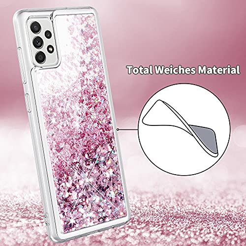 Wlooo Cover Samsung Galaxy A52 5G/4G, Custodia Samsung Galaxy A52, Glitter Bling Liquido Custodia Sparkly Ragazze Donne Luccichio TPU Silicone Protettivo Morbido Brillantini Quicksand Case (Oro rosa)
