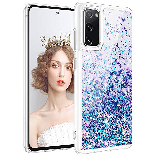 Wlooo Cover per Samsung Galaxy S20 Fe, Samsung Galaxy S20 Fe Cover, Glitter Bling Liquido Custodia Sparkly Ragazze Donne Luccichio TPU Silicone Protettivo Morbido Brillantini Quicksand Case Blu Viola