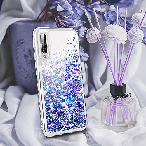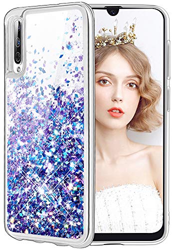 Wlooo Cover per Samsung Galaxy A50, Cover Samsung Galaxy A30S, Glitter Bling Liquido Sparkly Luccichio Pendenza TPU Silicone Protettivo Morbido Brillantini Quicksand Custodia Case (Blu Viola)