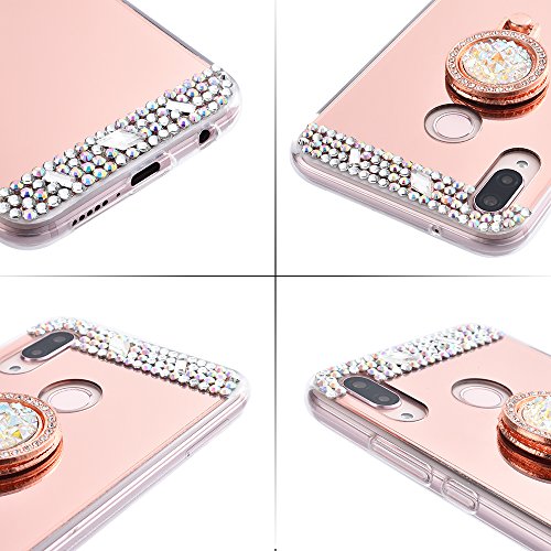 Wlooo Custodia Huawei P20 Lite Glitter Case, Specchio Lusso Diamante Bling Sparkly Shiny Trucco Cover con Ring Kickstand Cristallo Protettivo TPU Silicone Custodia per Huawei P20 Lite (Oro rosa)