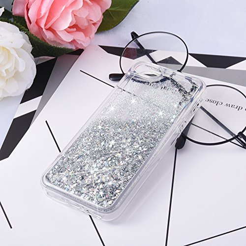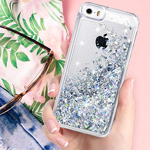 Wlooo iPhone SE Cover, iPhone 5/5S/SE Custodia, Glitter Case Luxury Moda 3D Bling fluente Liquido Floating Sparkle luccichio Cute Cover protettivo TPU Bumper Case per Apple iPhone 5/5S/SE (Argento)