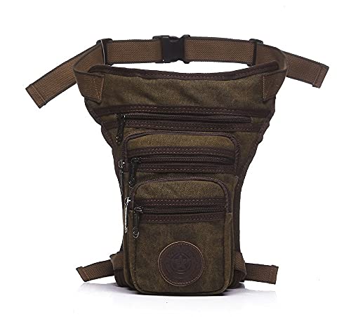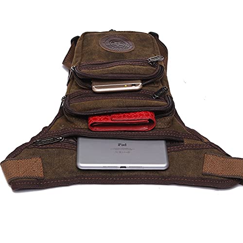 WLTYSM Marsupio da Gamba,Marsupio Cosciale Uomo Cintura Canvas Goccia Sacca da Gamba del messaggero Spalla Anca Bum Vita della Fanny Pack for Viaggi Trekking Moto Equitazione (Color: Coffee)