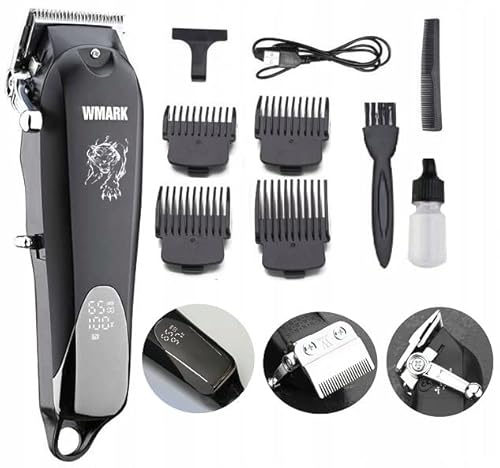 Il tagliacapelli WMARK ha lame antiruggine, una grande batteria che consente circa 300 minuti di lavoro. Il display LCD mostra il tempo di lavoro residuo.