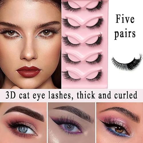 Wnddle 5 Paia di ciglia finte Cat Eye,Ciglia Finte Naturali Wispy Cat Eye lashes,Ciglia Finte Naturali,cat eye lashes,set di extension per ciglia finte naturali, Ciglia Autoadesive Riutilizzabil.