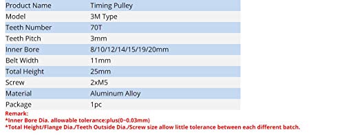WNJ-TOOL, 1pc HTD 3M 70T Pulegge dentate 8/10/12/14/15/19 / 20mm Interno Alesaggio 70 Denti da 3 mm Pitch 11 Millimetri Larghezza della Cinghia di sincronizzazione della Stampante Puleggia for 3D