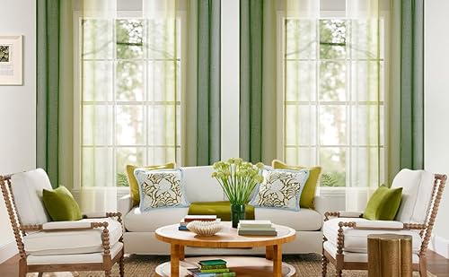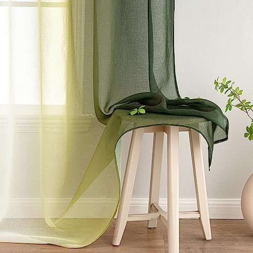 Woaboy 2 Pezzi Tende Voile Semi Trasparenti con Occhielli Tende Verticali Sfumate Poliestere Moderne Eleganti per Finestra Soggiorno Camera da Letto Balcone 140x245cm Verde Oliva