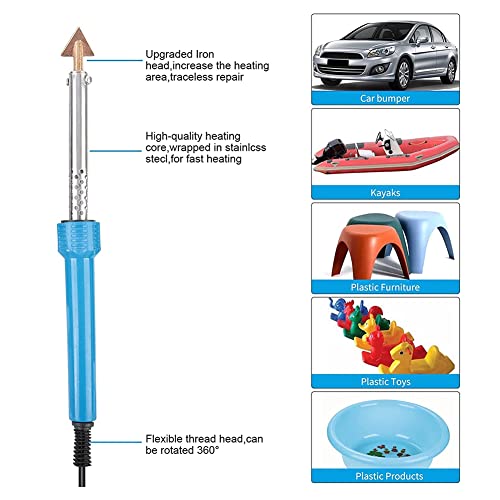 ampi La macchina professionale per la riparazione della plastica per saldatore di plastica può essere utilizzata per riparare parti in plastica come paraurti per auto, cruscotto, kayak, serbatoio del carburante, mobili in plastica e giocattoli per bambini. Inoltre, puoi anche fondere tutti i tipi di prodotti in plastica DIY.