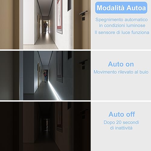 【Doppia Sensore di Movimento】: C'è un sensore a ciascuna estremità della striscia luminosa. striscia a led a batteria ricaricabile con la tecnologia a infrarossi passiva, prestazioni affidabili e alta sensibilità, rileva con precisione i tuoi movimenti. La migliore distanza di induzione è entro 3 metri (10 piedi). e l'angolo di induzione è di 120°.