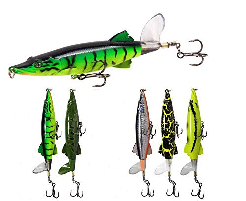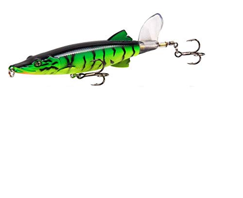 Wobbler, Whopper Plopper, esca per luccio, esca artificiale, pesci predatori, pesci predatori, esche da superficie, 14,5 cm, 20 g, coda rotante, popper, pesca (verde)