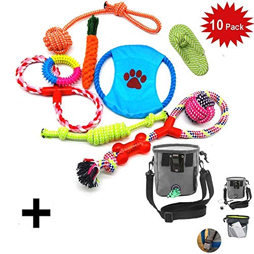 WoBoSen 10 Pezzi di Giocattoli del Cane, Piccolo a Medio Pet cani Durevoli Denti Nodo Corde, Palle, Scarpa, Disco Volante, Risatina Palla Giocattoli InterAttivi Set Con Trattamento Sacchetto di Formazione Borsa
