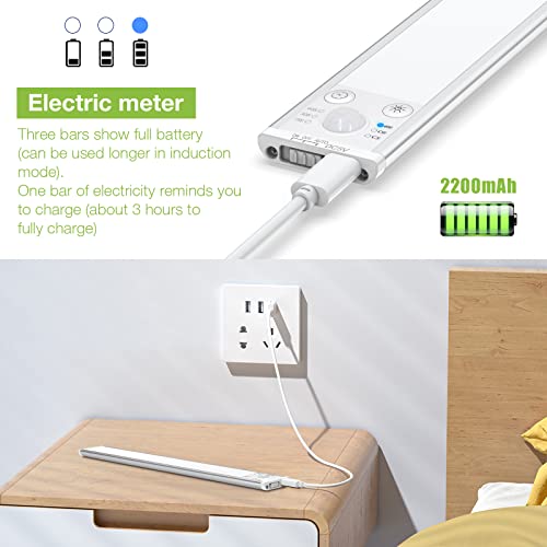 Wobsion Luci Con Sensore di Movimento 40CM,2200mAh USB Ricaricabile Sottopensile Cucina Senza Fili,138 LEDs Armadio 3000K/4000K/5000K Dimmerabile Per Corridoi