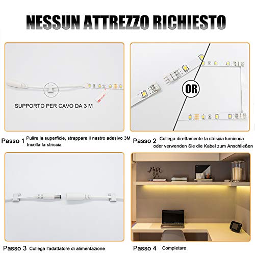 Wobsion Striscia Led Bianco Caldo 2M,4X50CM Striscia Led Luce Calda 2700K,Strisca Led Adesive 1200LM,Strisce Led 220V da Interno,Luci Led Sottopensile Con Interruttore,Striscia Led Per Cucina,Vetrine