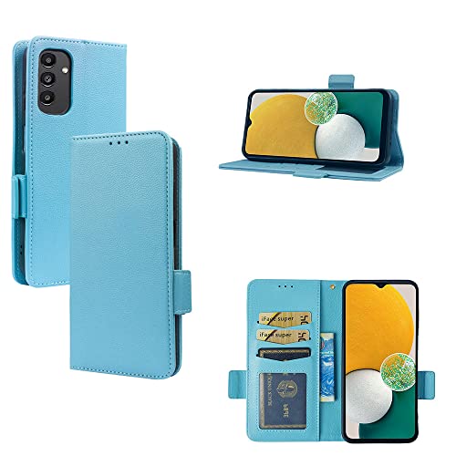 WOBURN Leather Folio Cover per Samsung Galaxy A14 5G Case, Custodia in Pelle PU Magnetica Libro Flip Portafoglio Bumper con [Funzione Stand]. Azzurro